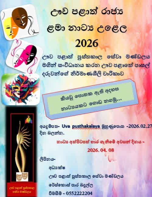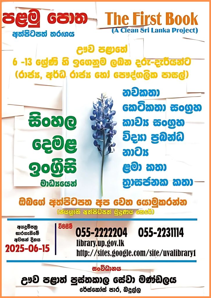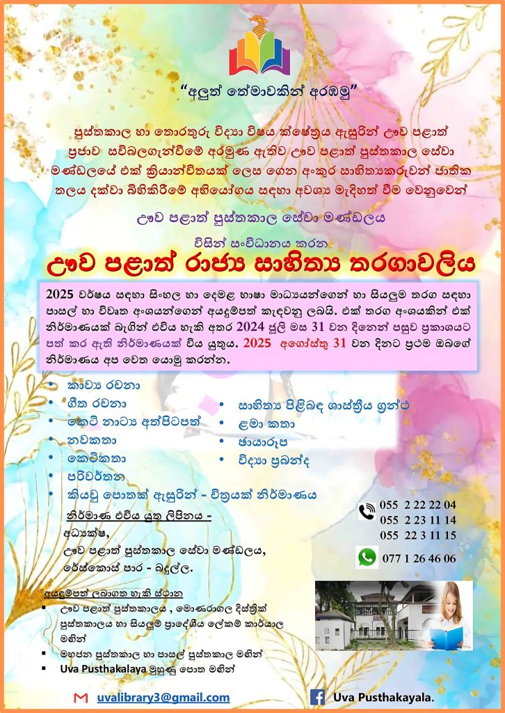 ඌව පළාත් රාජ්ය සාහිත්ය තරඟාවලිය – 2025 අයදුම්පත්ර භාර ගැනීම ආරම්භ කර ඇත.